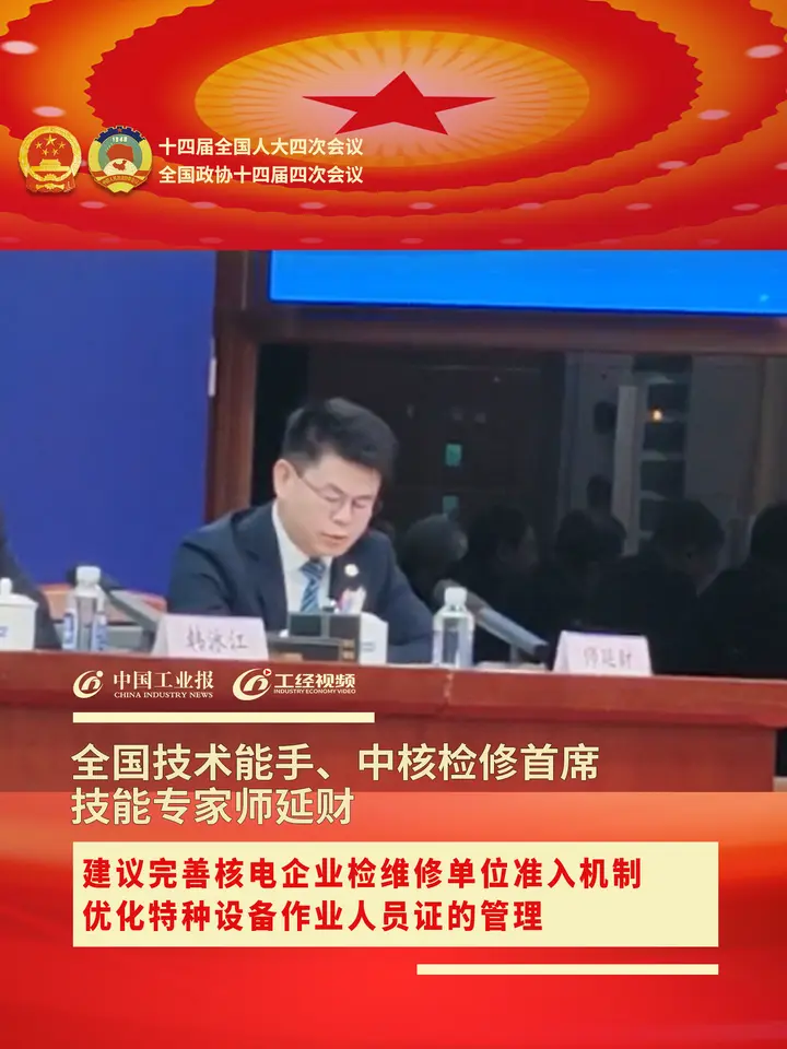 全国技术能手、中核检修首席技能专家师延财:建议完善核电企业检维修单位准入机制,优化特种设备作业人员证的管理#2026全国两会#中核集团
