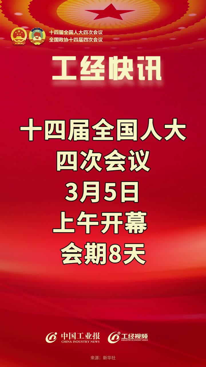 十四届全国人大四次会议3月5日上午开幕会期8天 #十四届全国人大四次会议 #中国工业报两会时间 #2026全国两会