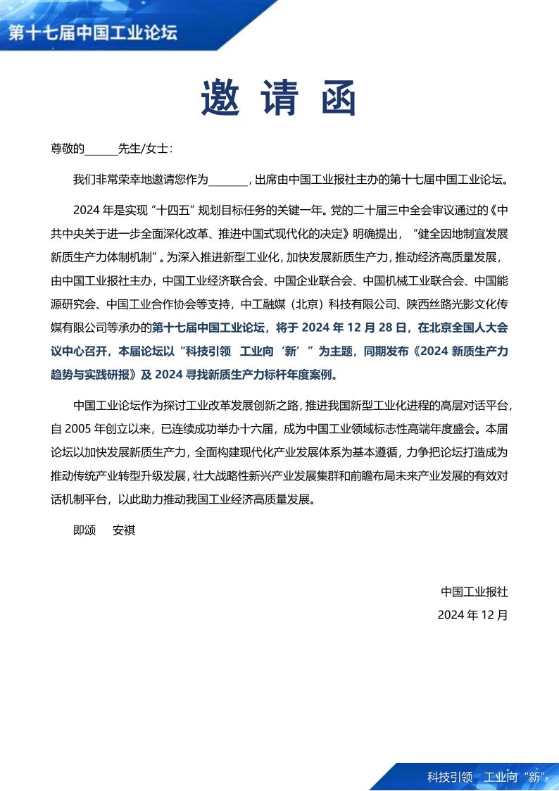 大会摘要:本届论坛以“科技引领 工业向‘新’”为主题,同期发布《2024新质生产力趋势与实践研报》及2024寻找新质生产力领跑者案例