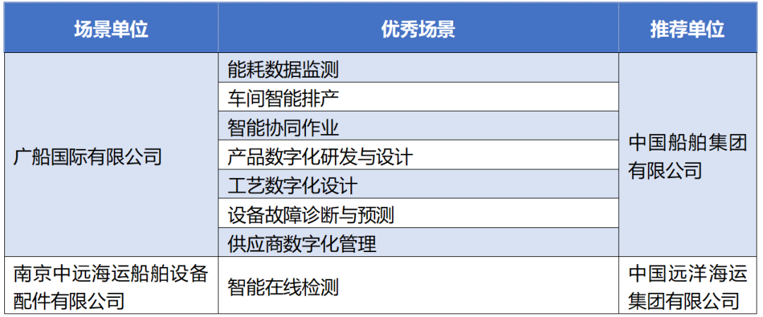 2023年度智能制造优秀场景公示名单(船舶企业)