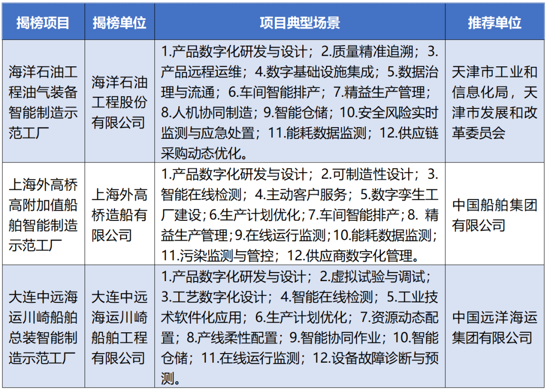 2023年度智能制造示范工厂揭榜单位(船舶企业)