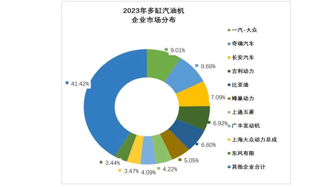12月多缸汽油机销量188.82万台,环比增长-3.53%,同比增长25.71%;全年销量1995.83万台,同比增长6.55%。在46家多缸汽油机企业中一汽-大众、奇瑞、长安汽车、吉利、比亚迪、蜂巢动力、上通五菱、广丰发动机、上海大众动力总成、东风有限销量排在前列。在销量较多的企业中,奇瑞、长安汽车、吉利、比亚迪、蜂巢动力年度销量增势表现突出。