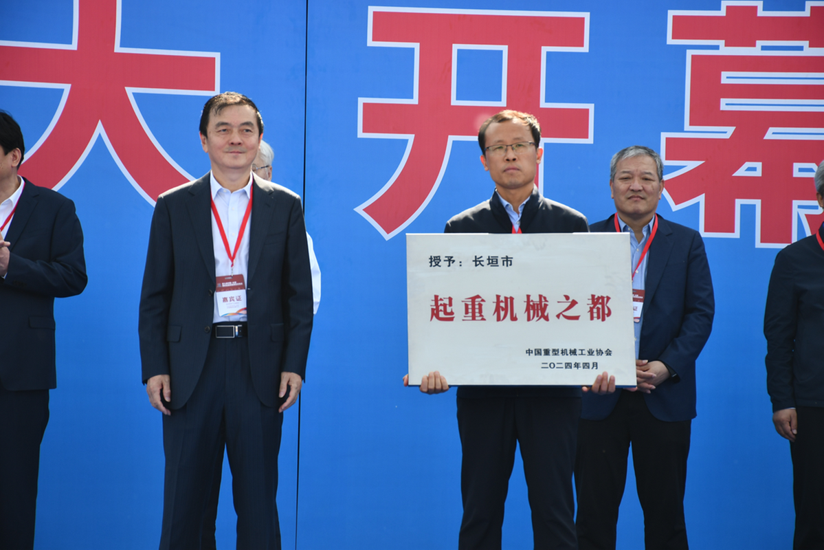 开幕式上,中国重型机械工业协会正式授予河南省长垣市“中国起重机械之都”称号。