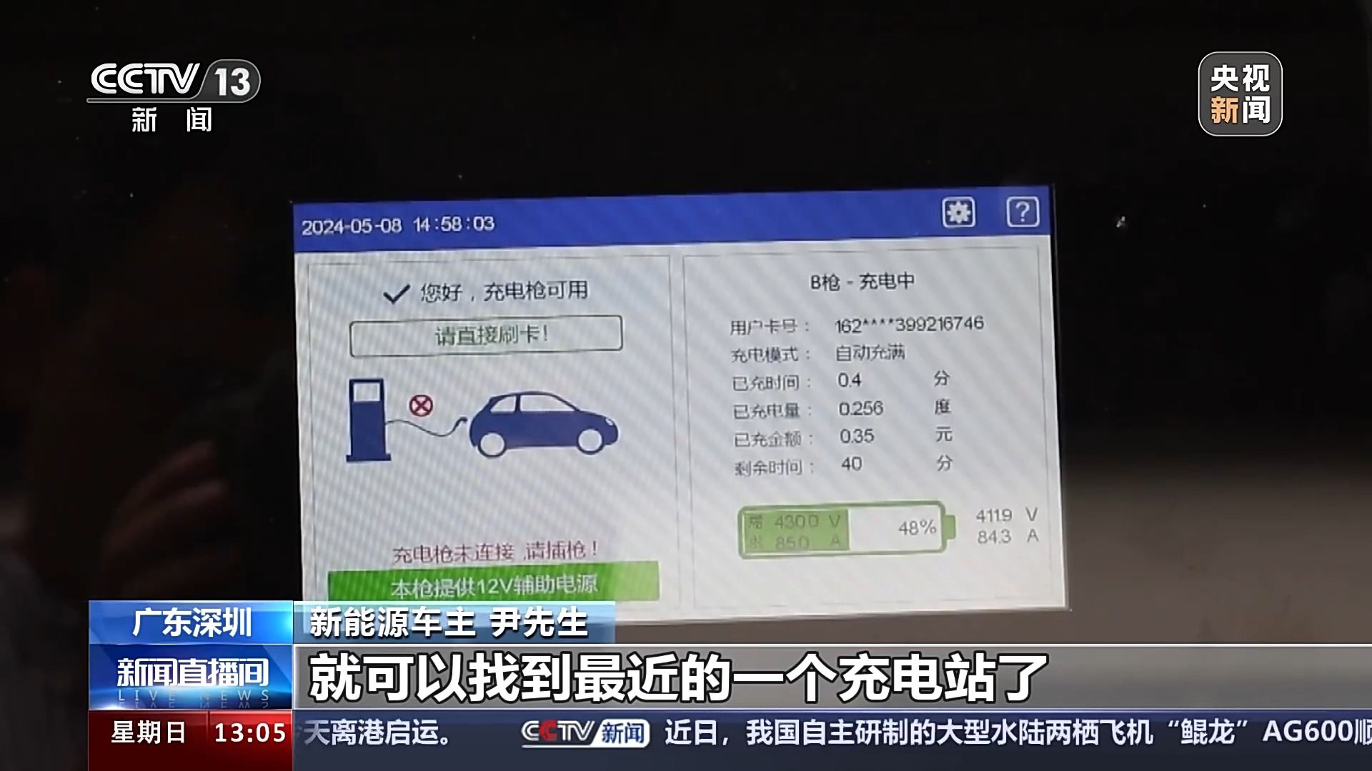 新能源车主尹先生:以前充电站比较少,现在充电站越来越多了。现在我们在手机端轻松搜一下,就可以找到最近的充电站。