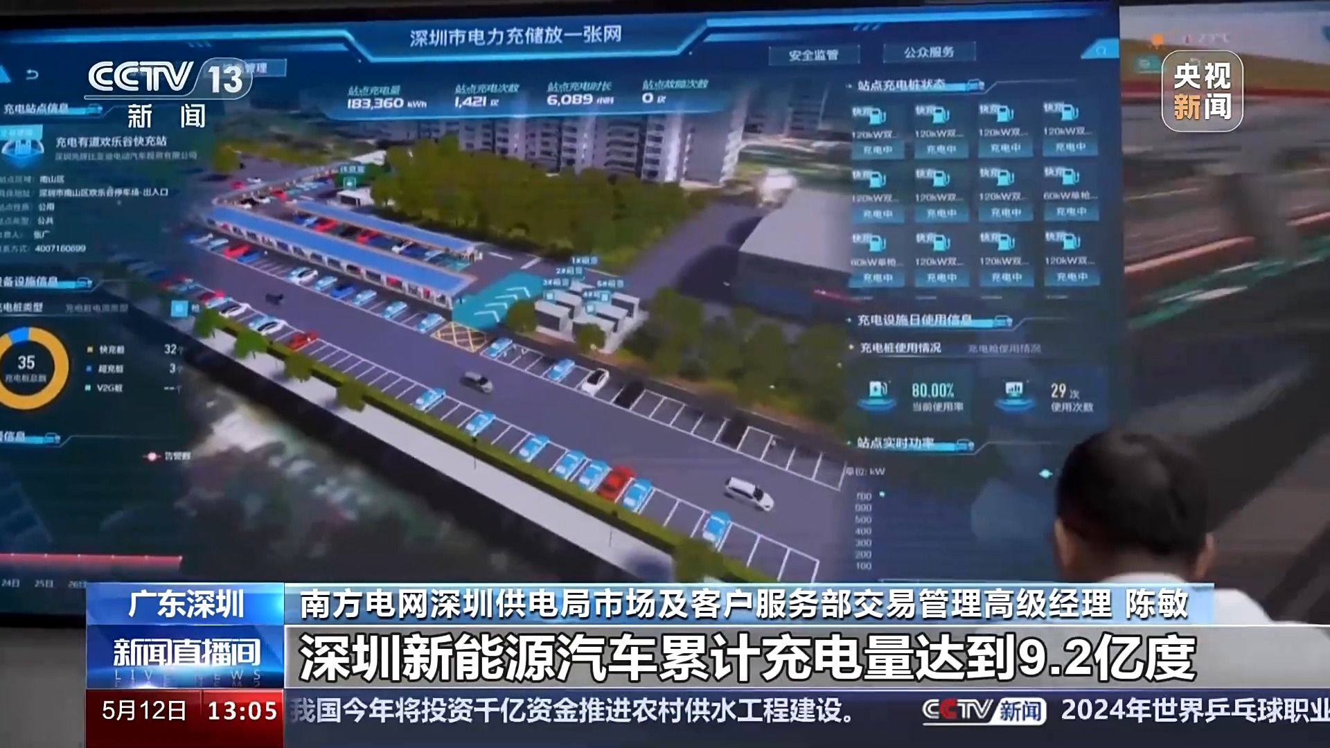 南方电网深圳供电局市场及客户服务部交易管理高级经理陈敏:随着超级充电模式的推广,充电效率大幅提升,充电量也快速增加。今年1—4月,深圳新能源汽车累计充电量9.2亿度,同比上升4.6%。