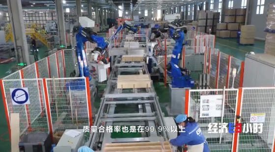 现在,LNG运输船的绝缘箱生产还实现了自动化和智能化。过去一条人工生产线,一个班组8小时只能生产120个绝缘箱,现在这条自动化生产线8小时可以生产240个。