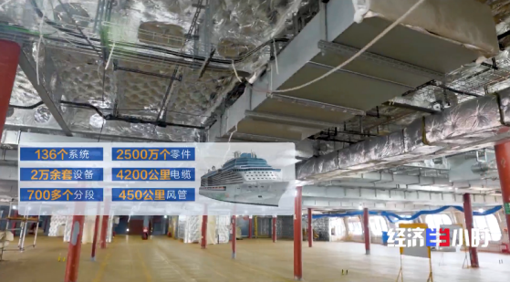 “爱达·魔都号”被誉为移动的“海上现代化城市”,是名副其实的巨型系统工程,其零件数量超过2500万个,是C919大飞机的5倍、“复兴号”高铁的13倍。