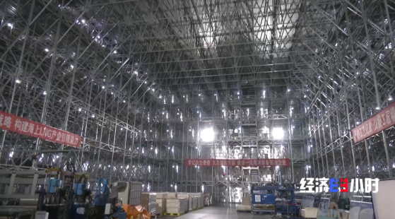 上海长兴岛,这家造船企业同时在建的LNG运输船达到了10多艘,其中3艘大型LNG运输船正在进行内部液货舱的建造。其中一艘LNG运输船有四个液货舱,货舱高达30米,相当于一座10层的高楼,大概能存储五万立方的天然气。