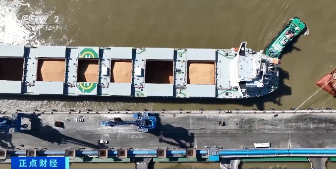 “艾米”号船长229米,吃水深度11.6米。从巴西装载了5万多吨大豆出发,于14日下午2点多靠泊在我国江苏的南京港。