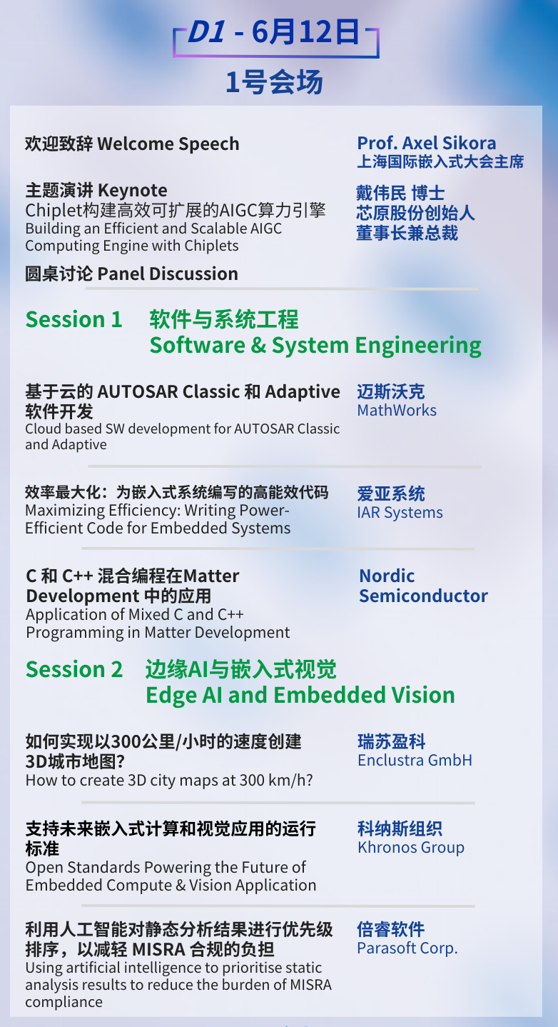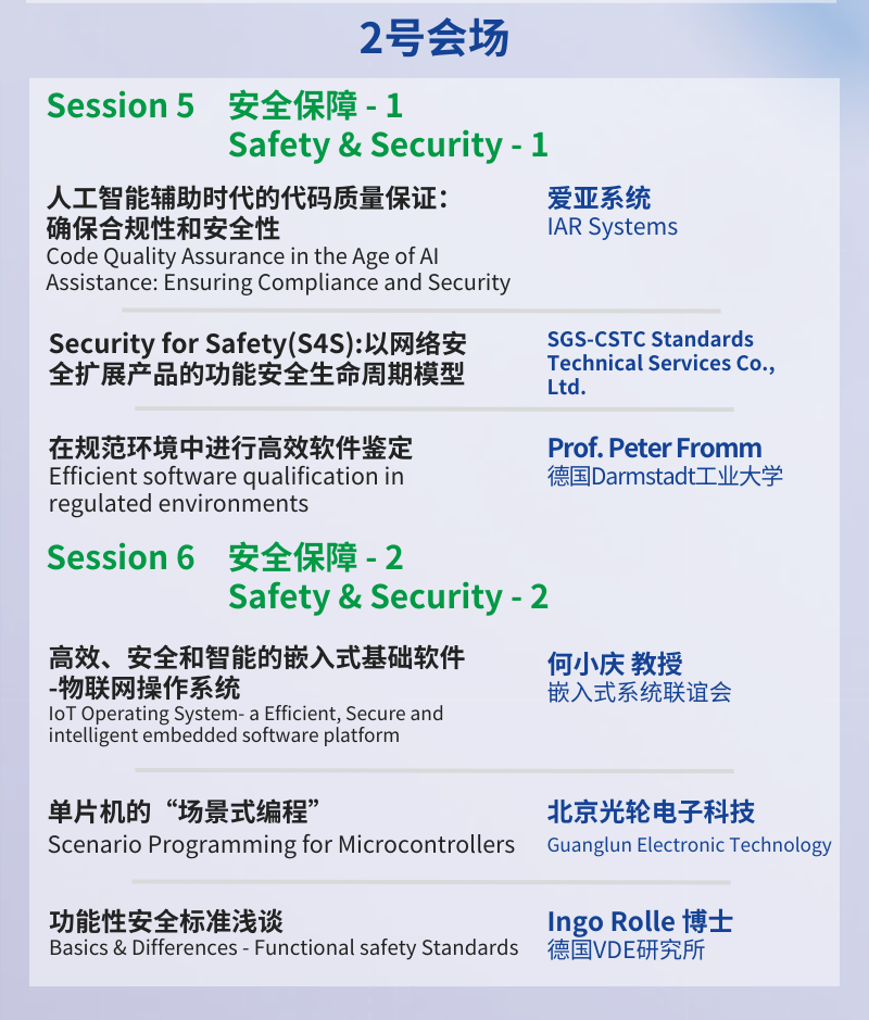 展会同期,主办方联合专业媒体WEKAFACHMEDIENGmbH合作举办“上海国际嵌入式大会”。大会延续德国embeddedworld母展核心与模式,坚持以“学术内容为导向”、以“传递嵌入式行业核心知识”为主旨,致力为嵌入式系统产业研发者、工程师、技术人员等打造一个高质量的交流平台。嵌入式大会主席Axel教授,嵌入式系统联谊会秘书长何小庆教授,芯原股份创始人、董事长兼总裁戴伟民博士,中关村智用人工智能研究院孙明俊院长,北京开源芯片研究院首席科学家包云岗教授等30余位国内外专家,将以人工智能、网络安全、开源架构、RISC-V、智能网联、软件与系统工程等内容为主题开展深入探讨。