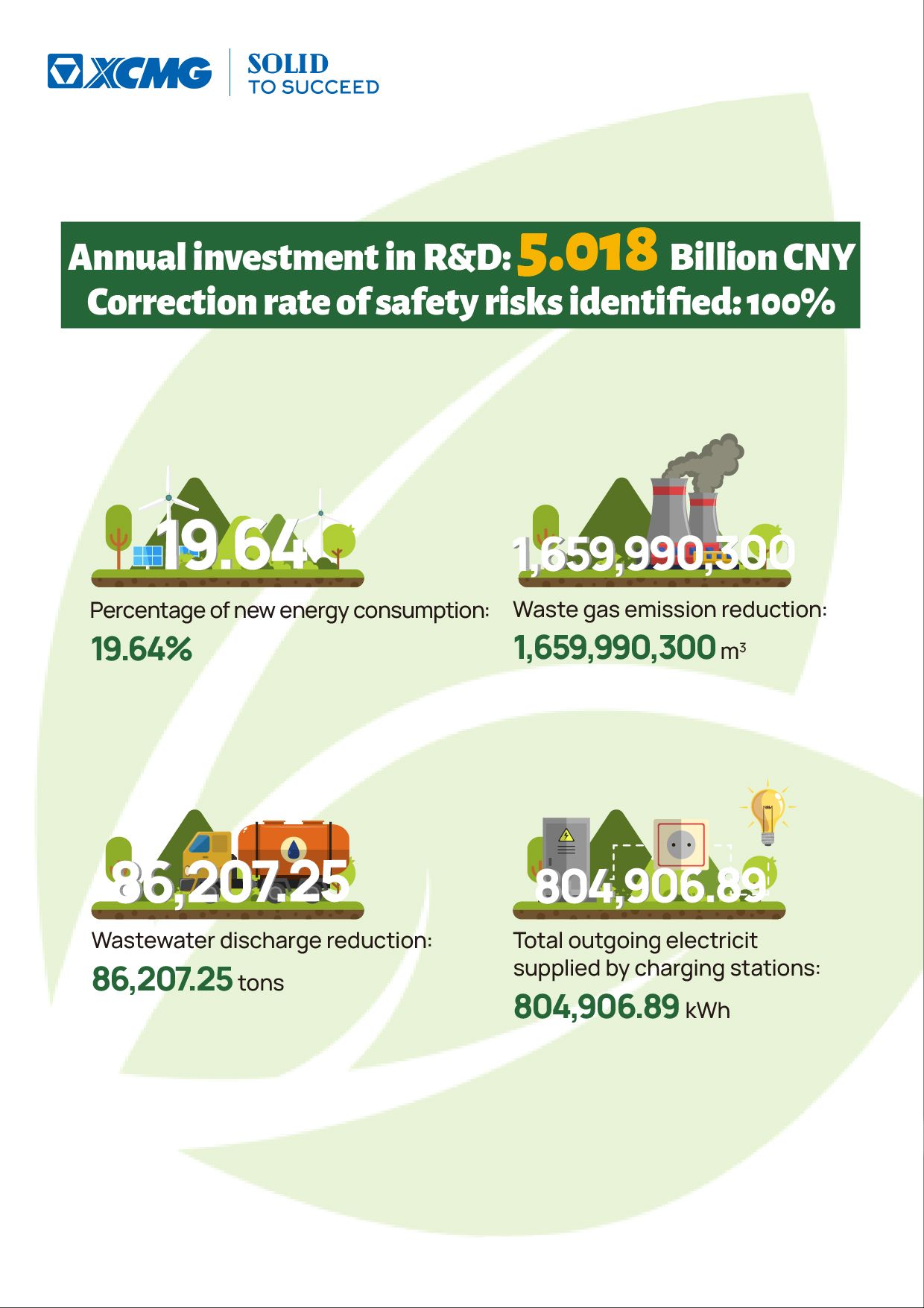 作为行业内首个发布碳达峰碳中和行动规划纲要的公司,徐工布局规划了纯电、混动、氢能技术路线和电芯电池、电机电控等核心零部件产业和充换电站基础设施;在新一轮科技革命和产业变革的浪潮下,在新能源电动化赛道加速跑,产品成套化应用于城市建设、矿山港口、公路运输等主流场景,为全球客户提供优质服务和绿色解决方案;严格遵守环境保护相关法律法规,强化资源管理和排放物管理,将绿色发展理念切实融入公司日常办公和运营环节,安装屋顶光伏、电动车充电桩,持续探索可再生能源和清洁能源应用,贯彻绿色低碳理念。