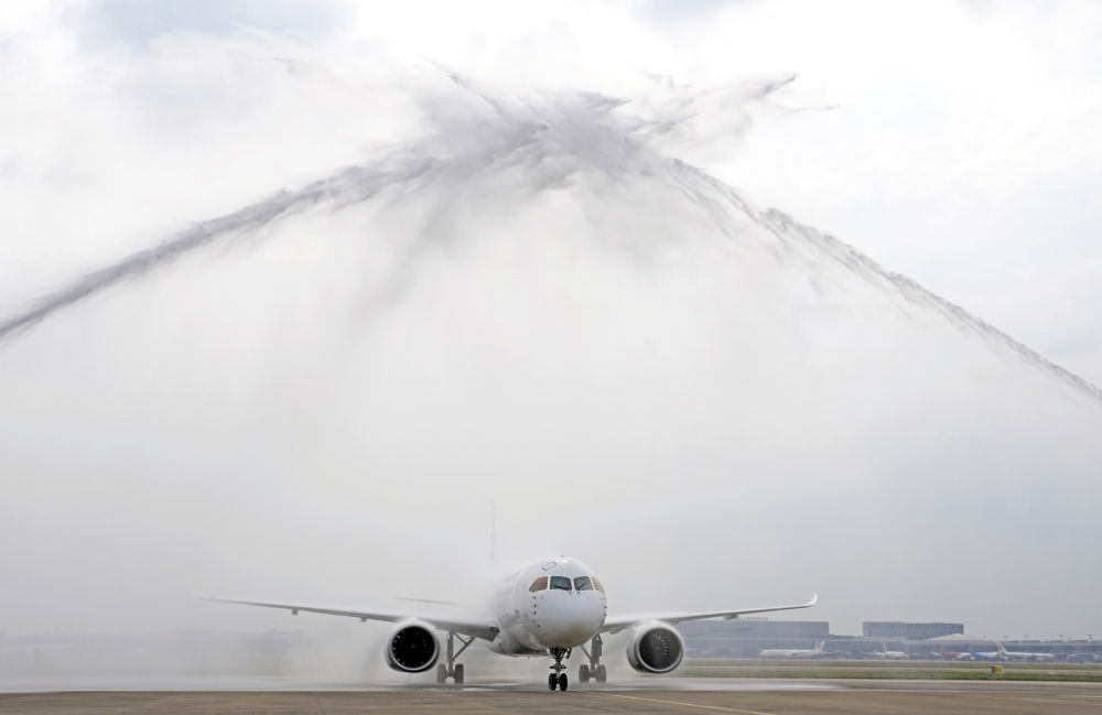 这是C919首次执飞跨境商业包机。航班于当天上午自上海虹桥机场出发,11时许抵港。随后,启航仪式在香港机场举行。
