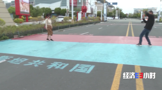 在两国国门交界的地方,地上的红色和蓝色分别代表中国和哈萨克斯坦。跨一步就代表出国,是“网红”热门打卡点,被称为“一脚跨两国”。