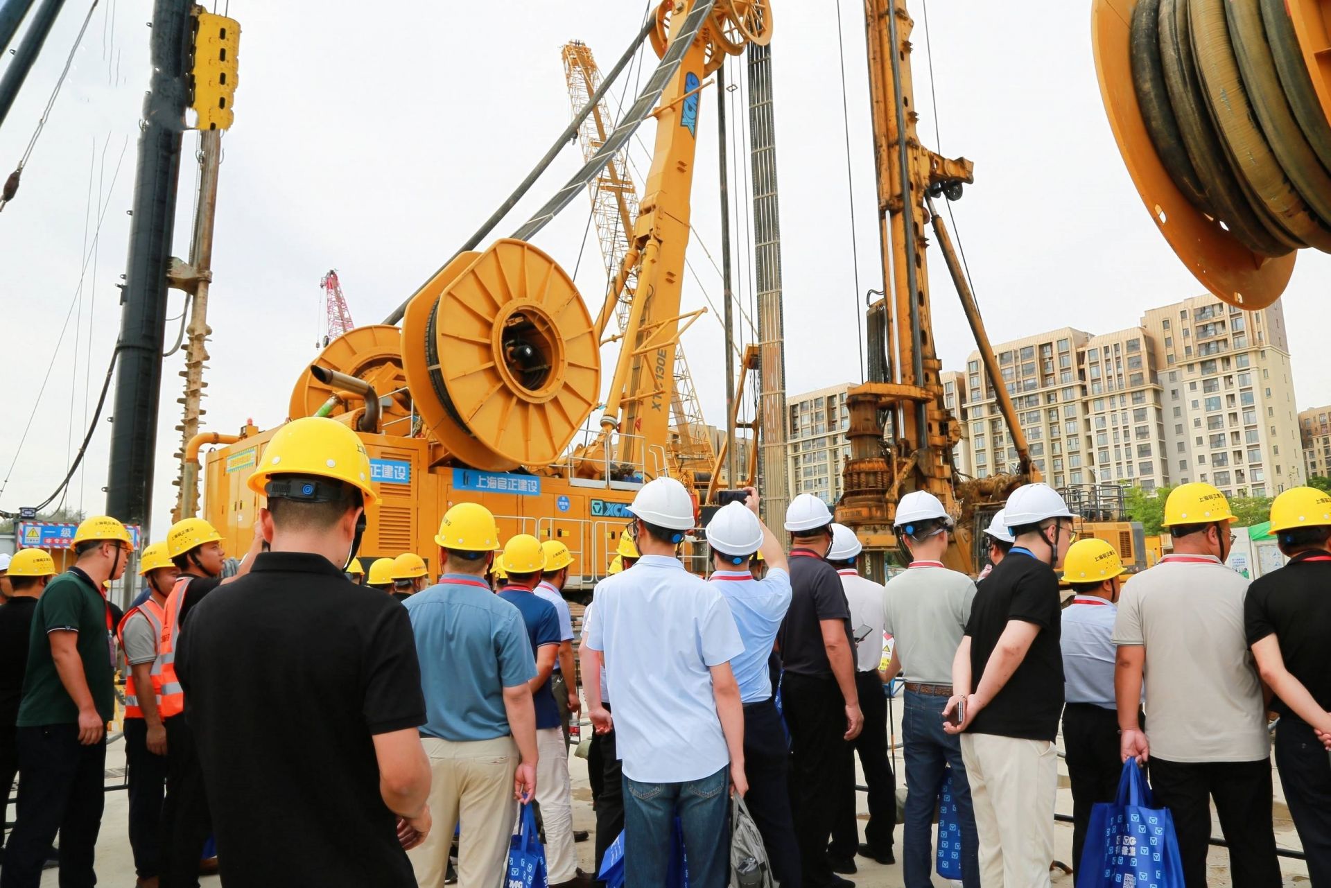 线上、线下客户直击施工一线。两台徐工双轮铣槽机、三台徐工旋挖钻机。