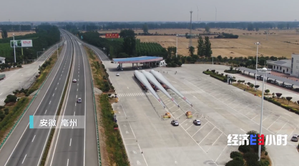 三辆装载着风机叶片的大型运输车从湖南韶山装货出发,一路经过湖北、河南两省,行驶1400多公里后,到达目的地安徽亳州市涡阳县。
