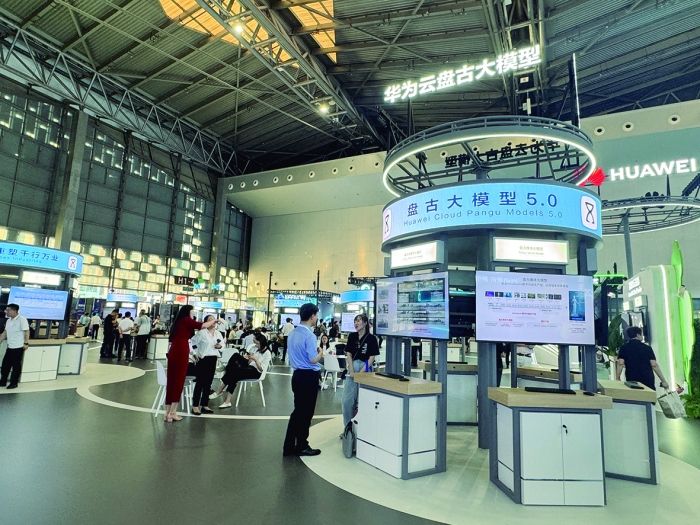 与华为有战略合作的乐聚机器人,带来了搭载盘古大模型的“夸父”。双方基于华为云的算力和AI能力,赋能人形机器人大脑;基于乐聚本体设计和运动控制能力,对机器人小脑和肢体的研发工作展开持续攻关。乐聚机器人相关负责人介绍,“夸父”重约45千克,全身26个自由度,行走速度最高可达4.6千米/小时,可快速连续跳跃,跳跃高度超20厘米。在此前举行的华为开发者大会上,“夸父”大秀肌肉,展示了识别物品、问答互动、击掌、递水等动作。