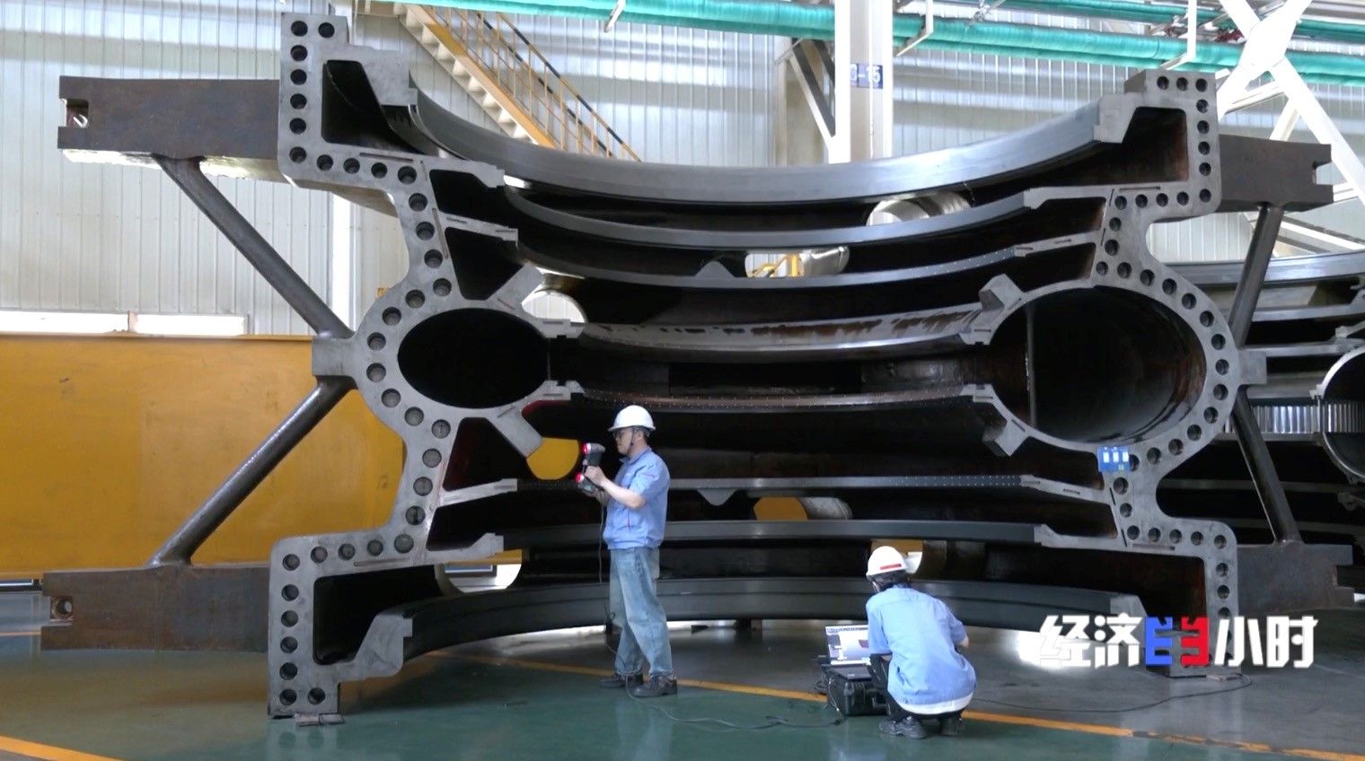 过去,对几十吨重的大型转子进行测量是一个费时费力的精细活。需要拿着测量工具一点点测量,记录下每一个数据。现在有了数字化在线激光测量设备,测量精度和效率大幅提升。