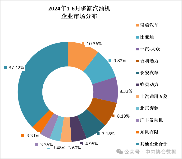 6月多缸汽油机销量155.93万台,环比增长6.00%,同比增长-10.70%;1-6月累计销量897.68万台,同比增长0.07%。在45家多缸汽油机企业中奇瑞、比亚迪、一汽-大众、吉利、长安汽车、蜂巢动力、上通五菱、北京奔驰、广丰发动机、东风有限销量排在前列,占总销量的62.58%。在销量较多的企业中,奇瑞、比亚迪、吉利、蜂巢动力累计销量增势表现突出。乘用车用在多缸汽油机占比为97.55%,6月销量152.46万台,环比增长6.68%,同比增长-9.56%;1-6月累计销量875.70万台,同比增长1.16%。奇瑞、比亚迪、一汽-大众、吉利、长安汽车、蜂巢动力、上通五菱、北京奔驰、广丰发动机、东风有限销量排在前列。小汽油机行业主要做进出口贸易,受内外部环境影响明显导致波及较大。在可比口径中,6月小汽油机销量环比增长,同比及累计同比增长。6月小汽油机销量76.00万台,环比增长21.12%,同比增长55.08%;1-6月累计销量409.81万台,同比增长20.56%。销量前五名企业为润通、隆鑫、华盛、力帆内燃机、苏州双马。在配套农业机械中,6月销量28.98万台,环比增长26.04%,同比增长72.07%。1-6月累计销量159.96万台,同比增长32.04%在配套园林机械领域中,6月销量13.23万台,环比增长23.22%,同比增长7.24%;1-6月累计销量76.21万台,同比增长-9.02%。