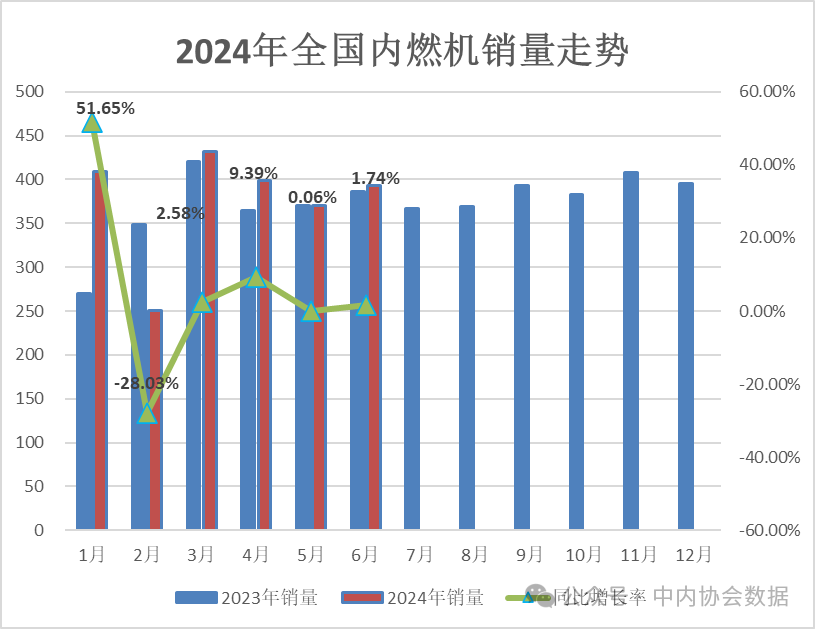 根据中国内燃机工业协会数据,2024年6月内燃机行业销量环比增长,同比小幅增长,上半年累计销量同比增长,较1-5月增幅有所回落。