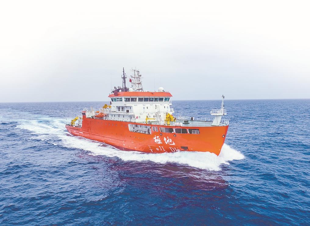 “极地”号船长89.95米、宽17.8米,具备全球无限航区航行能力,排水量约5700吨,续航力1.4万海里,自持力80天,艏向破冰能力为0.8-1.0米当年冰。设计上也更为人性化,舱室噪声达到中国船级社舱室噪声1级水平,大大提高了舱室的舒适度。“极地”号破冰调查船最大的亮点是无人化。除了传统的科考工具和设备,“极地”号搭载了无人机、无人船以及水下自主机器人等最新高科技装备。船载的无人机可以从空中俯瞰广阔的海域,实时传回大气、海冰等数据;无人船则能够深入到传统船只难以抵达的区域,为科学家提供更为全面的海洋信息;水下自主机器人更是在深海探测中发挥着不可替代的作用,逐步打开海洋深处的奥秘。“空-天-冰-海-潜”一体化的科考模式,赋予科学家们更为广阔的探索空间。