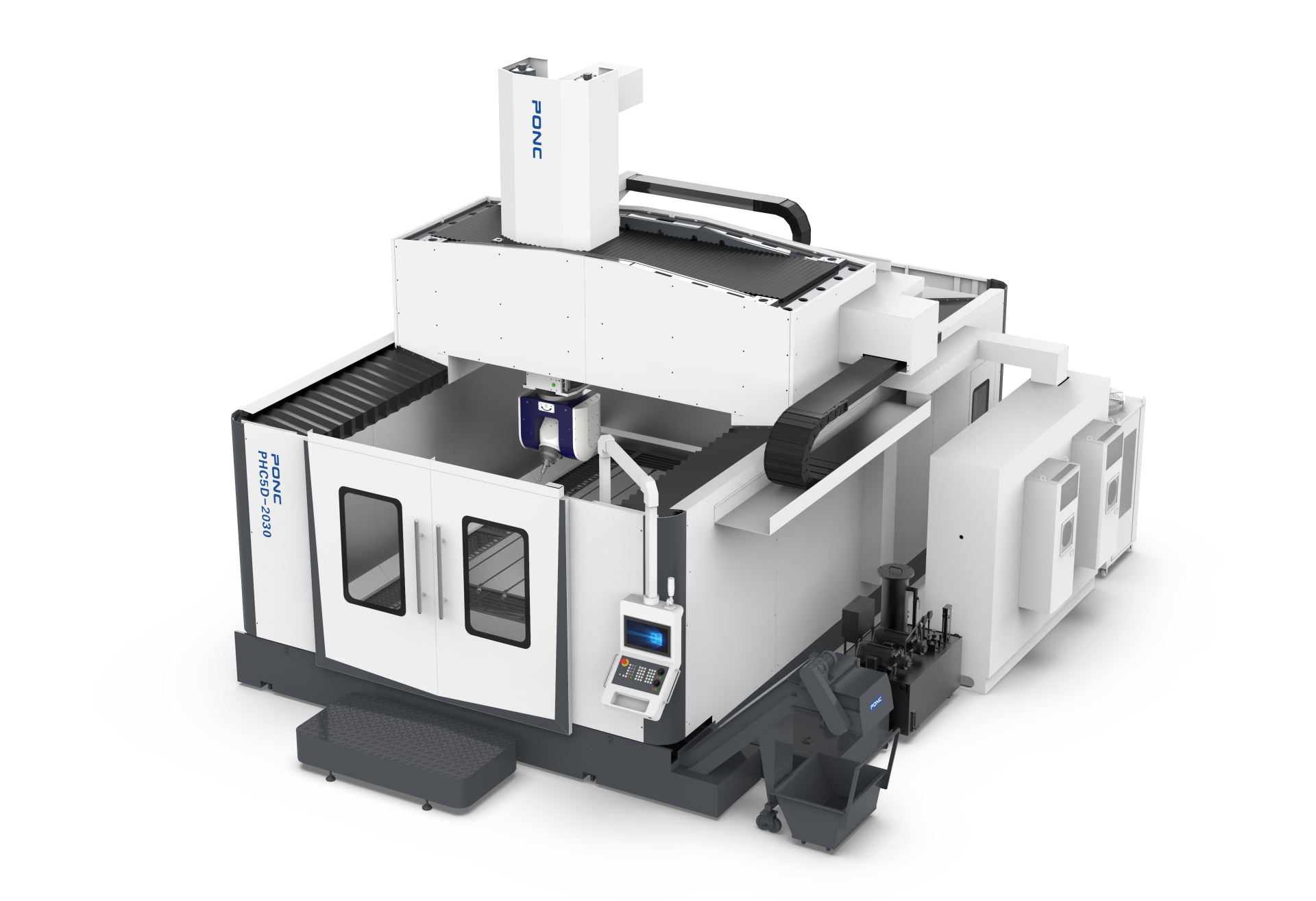 PHC5D是专为模具行业研发制造的龙门,可以实现五轴联动加工,特别适用于中大型的钢材、铝合金、复合材的精加工需求,此类加工要求高加工效率、高表面加工质量和精度,加工表面复杂,如内外圆、锥面、球面、2D和3D复杂曲面、多面加工。