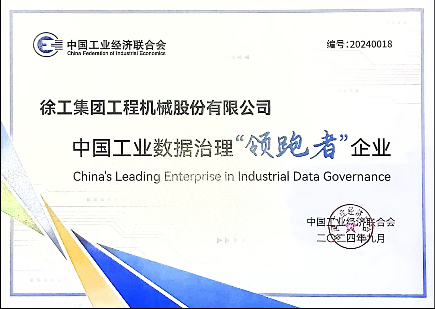 9月11日,由中国工业经济联合会举办的第二届中国工业高质量发展论坛隆重召开。会上,2024中国工业数据治理“领跑者”企业名单正式揭晓,徐工凭借其在工业数据治理领域的卓越表现和突出成就,成功入选这一国家级荣誉榜单。