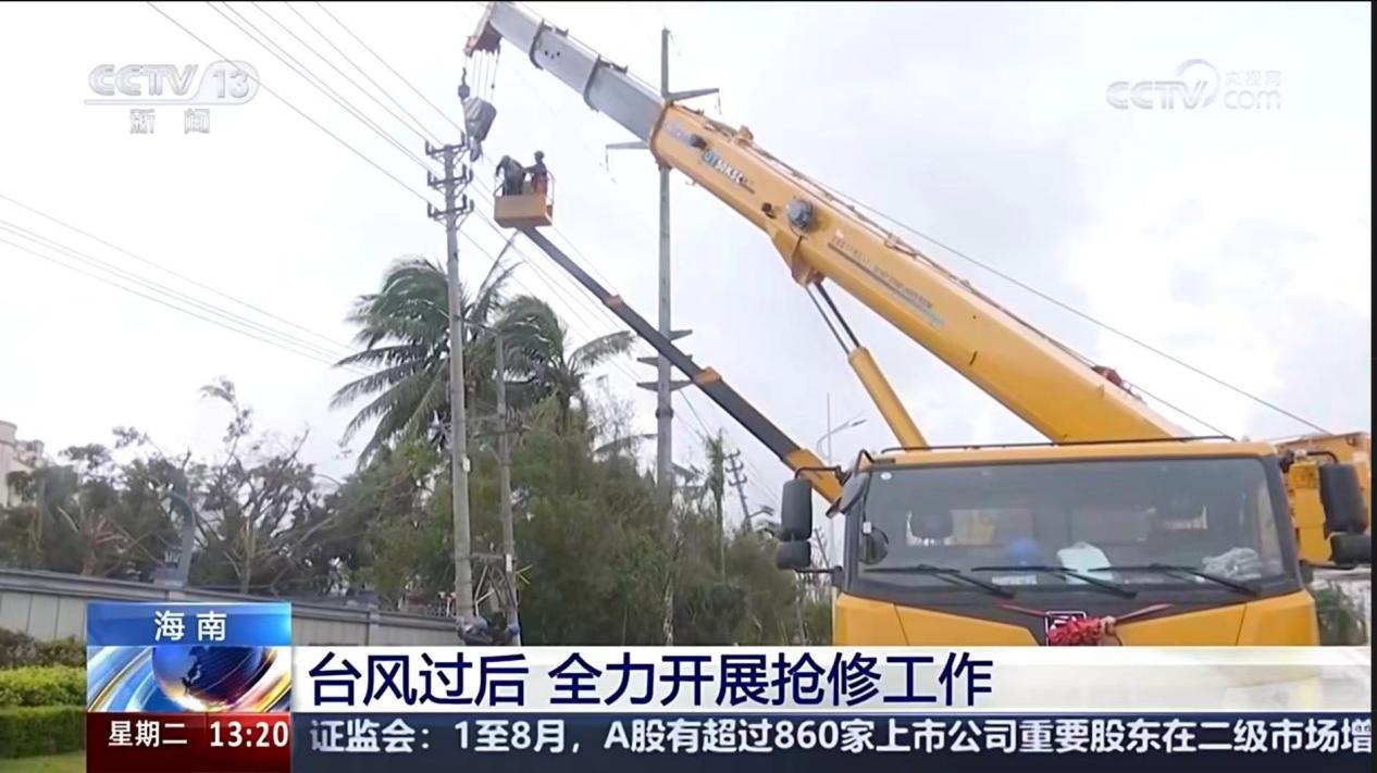 在这场与时间赛跑的抢修战役中,央视的镜头中出现了坚定前行的“徐工金”,正在助力海南当地电网维修,用行动诠释了责任与担当,为受灾地区带去了温暖与希望。