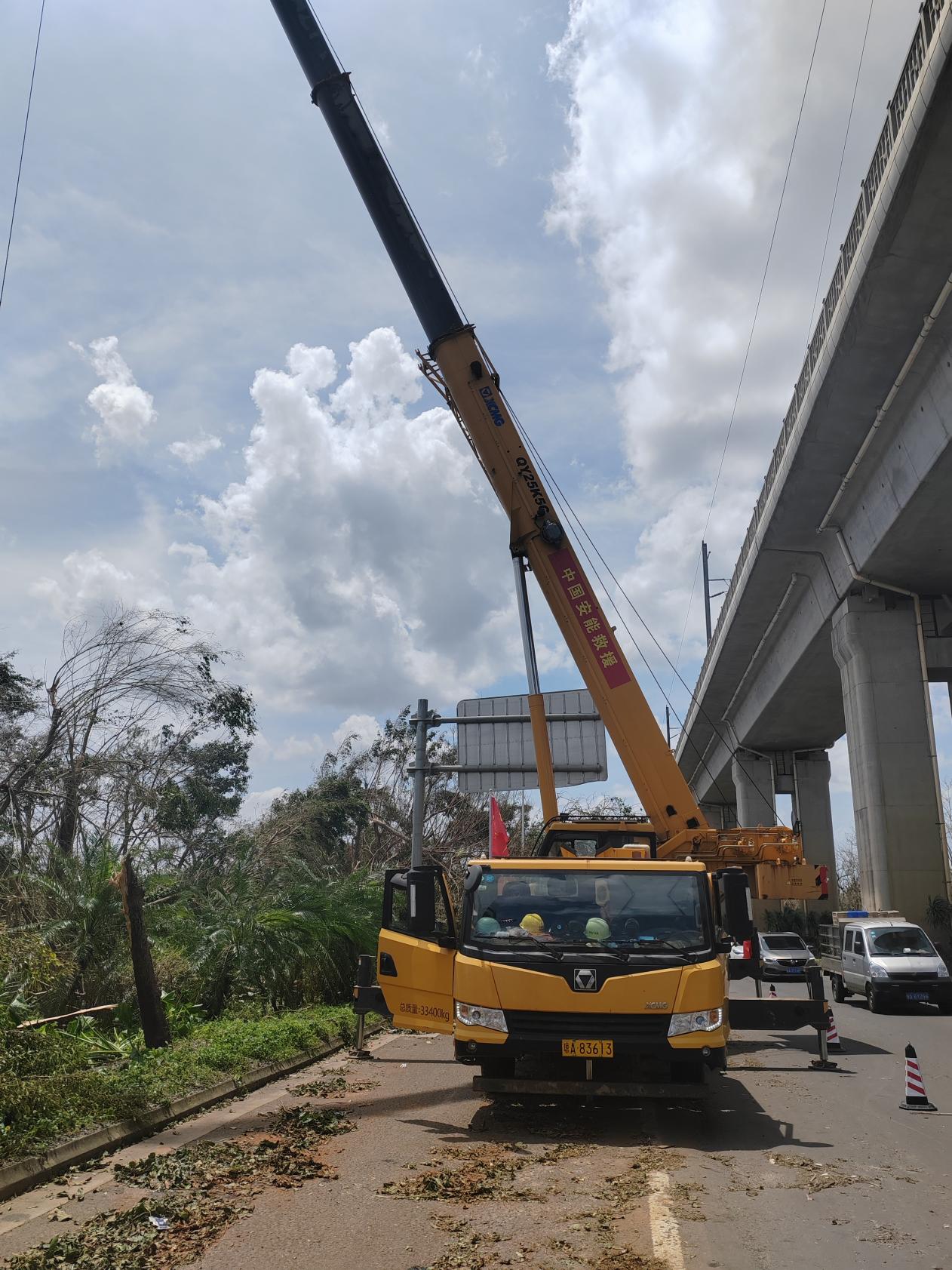 台风退却,海南重建之路开启。徐工起重成立专项服务队,挺身而出,协调起重设备,迅速抵达灾区,清扫段木、水电网基础设施的恢复工作。