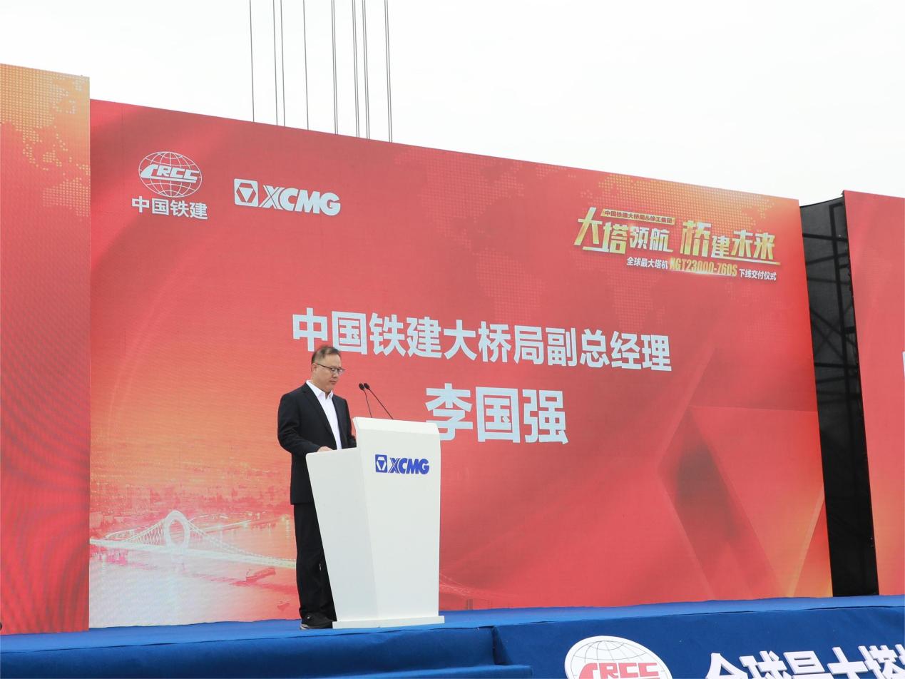 李国强在致辞中表示,全球最大塔机XGT23000-760S是行业标杆产品,其超强的技术性能完全满足桥塔钢结构的吊装,能有效解决南沙万龙大桥项目吊装构件重、附着悬高大、区域强台风、钢材易腐蚀等极端复杂工况下作业的多项世界难题。再次与徐工合作,提升了中国铁建大桥局的桥梁建造核心能力,向“高精尖、难险特”桥梁施工迈出更坚实的一步。