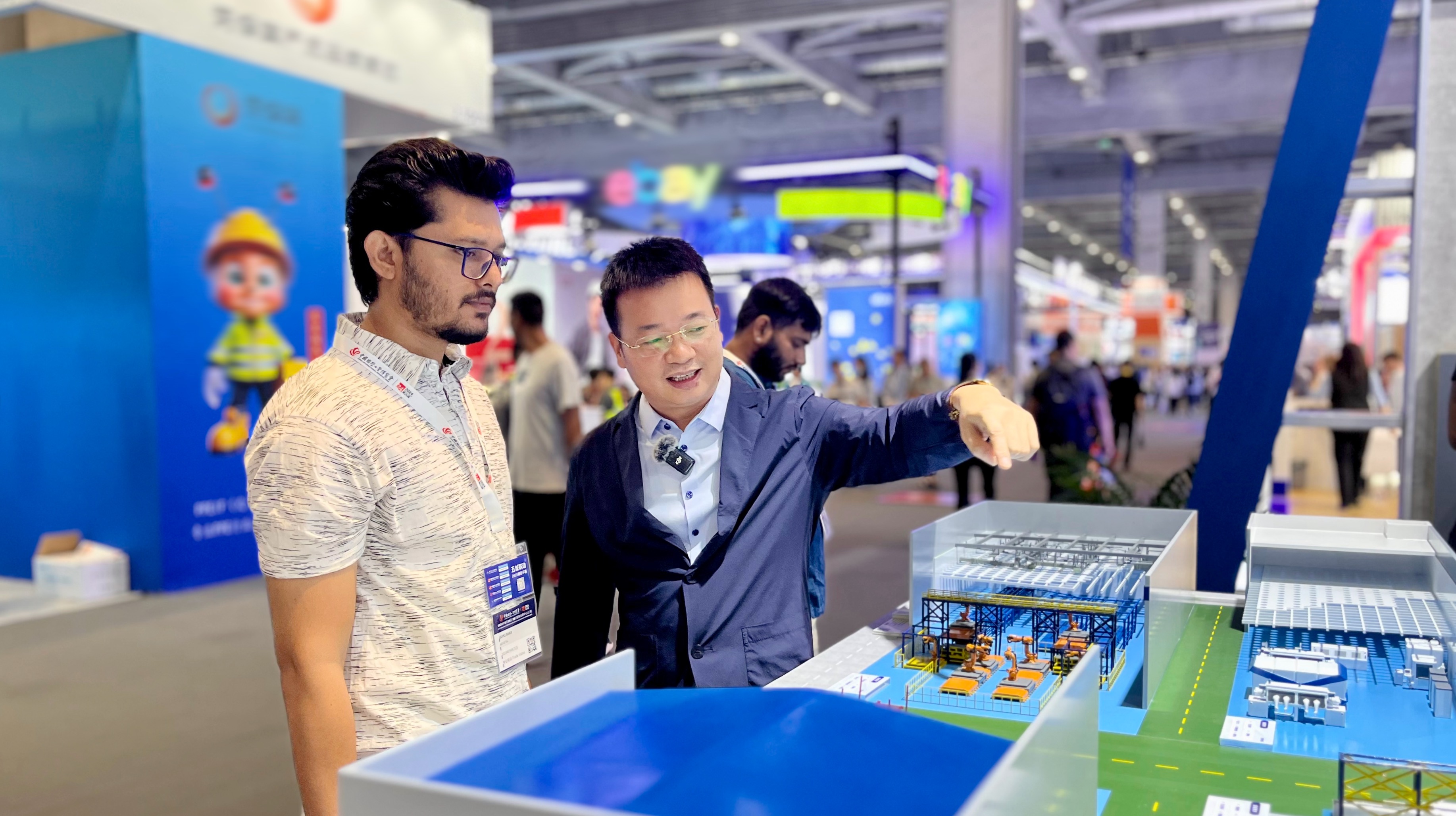 欧阳讲继在中国工博会现场为展会来访者介绍解决方案