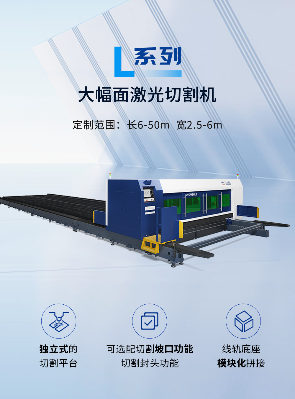 此次交付的设备,是大族激光智能装备集团的L系列线轨大幅面激光切割机,切割效果出众,操作简便易用,稳定性强,在电力装备、船舶、工程机械、钢结构等行业已得到大量应用。设备的切割平台采用模块化组装的结构,工作台与机床床身完全分离,既能避免超高功率激光切割产生的热影响,也能避免上下料时产生的冲击和震动,有效满足超大幅面、超高功率切割需求。