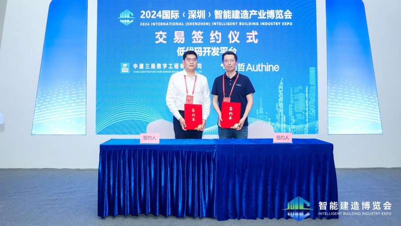 与此同时,在本届建筑智能博览会上,奥哲高级副总裁邓儒佳与中建三局数字工程有限公司副总经理陈文林,正式签署了“低代码开发平台”的交易签约。此次合作也标志着双方的合作迈上新台阶。作为建筑行业数字化的先行者,中建三局与奥哲基于精益建造管理思想,通过奥哲·云枢低代码平台合力打造了面向企业管理、项目管理的数字一体化管理平台已成为引领建筑行业数字化转型的成功典范。