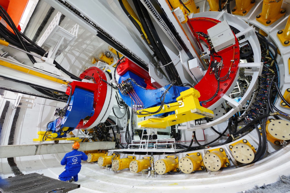 经攻关平台各方全力以赴,仅9个月时间,宽11.83米、高7.27米,世界上首台最大断面的“类矩盾构”最终亮相,宁波市将其命名为“阳明号”。