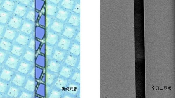 图1:左图为传统网版,右图为昇印开发全开口网版