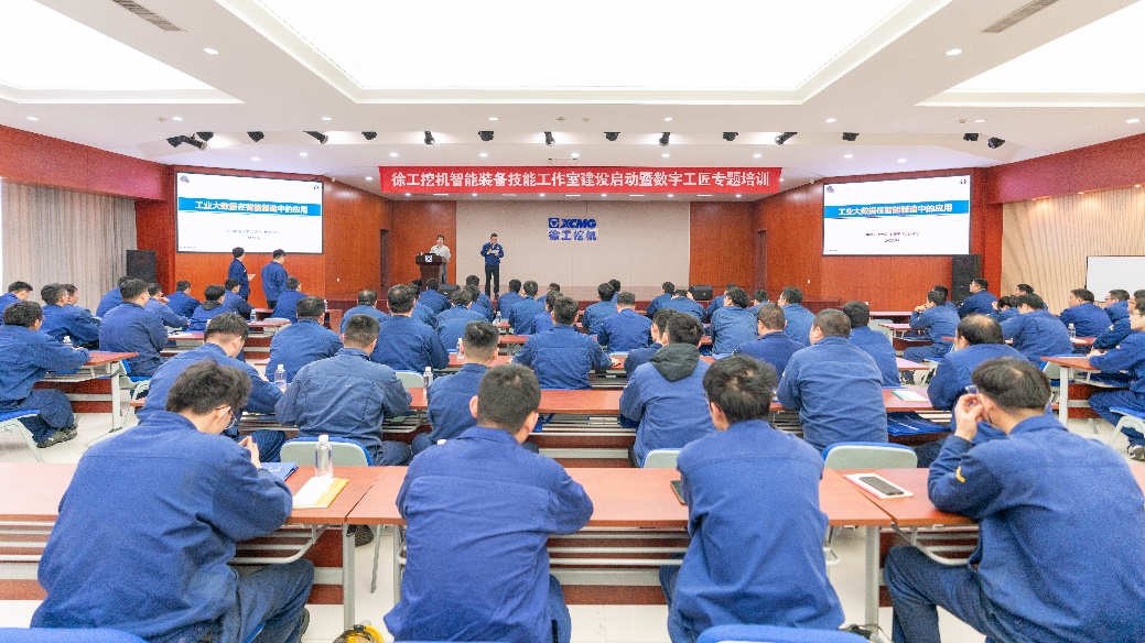 在徐工挖机的智能化生产车间,技能大师工作室就建在生产线旁,工作室成员围绕生产难题及技术成果验证展开多轮研讨,很多问题都在这里第一时间解决,一系列的创新创效成果也在这里“落地开花”。