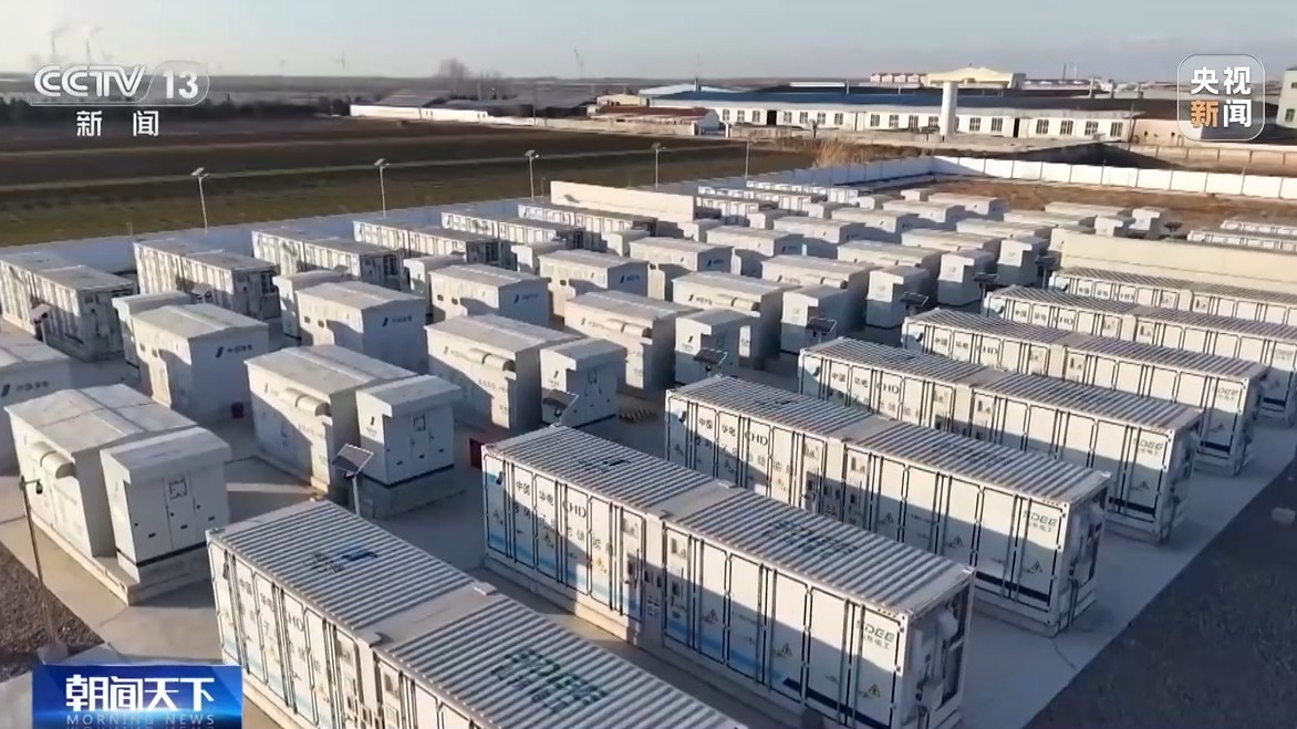 总台央视记者古峻岭:这个项目还配套建设了一个储能电站,这一片白色箱体像是一个个巨大的“充电宝”,在白天阳光强烈时,把多余的太阳能储存在这里,夜里再将电池里的电能释放出来,成为一个夜里也能发电的光伏电站。同时由于它采用了新型电化学储能技术,使得它不仅仅具有“充电宝”的功能,还能够在电网发生波动的时候,发挥稳压和调频的作用,确保电网的安全和稳定。