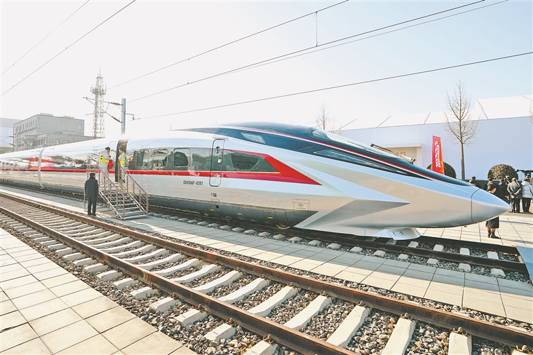 记者从中国国家铁路集团有限公司获悉,12月29日,运营时速400公里的CR450动车组样车在北京发布,这标志着“CR450科技创新工程”取得重大突破,将极大提升中国铁路科技创新水平和科技自立自强能力,进一步巩固扩大中国高铁技术世界领跑优势。新华社记者 鞠焕宗摄