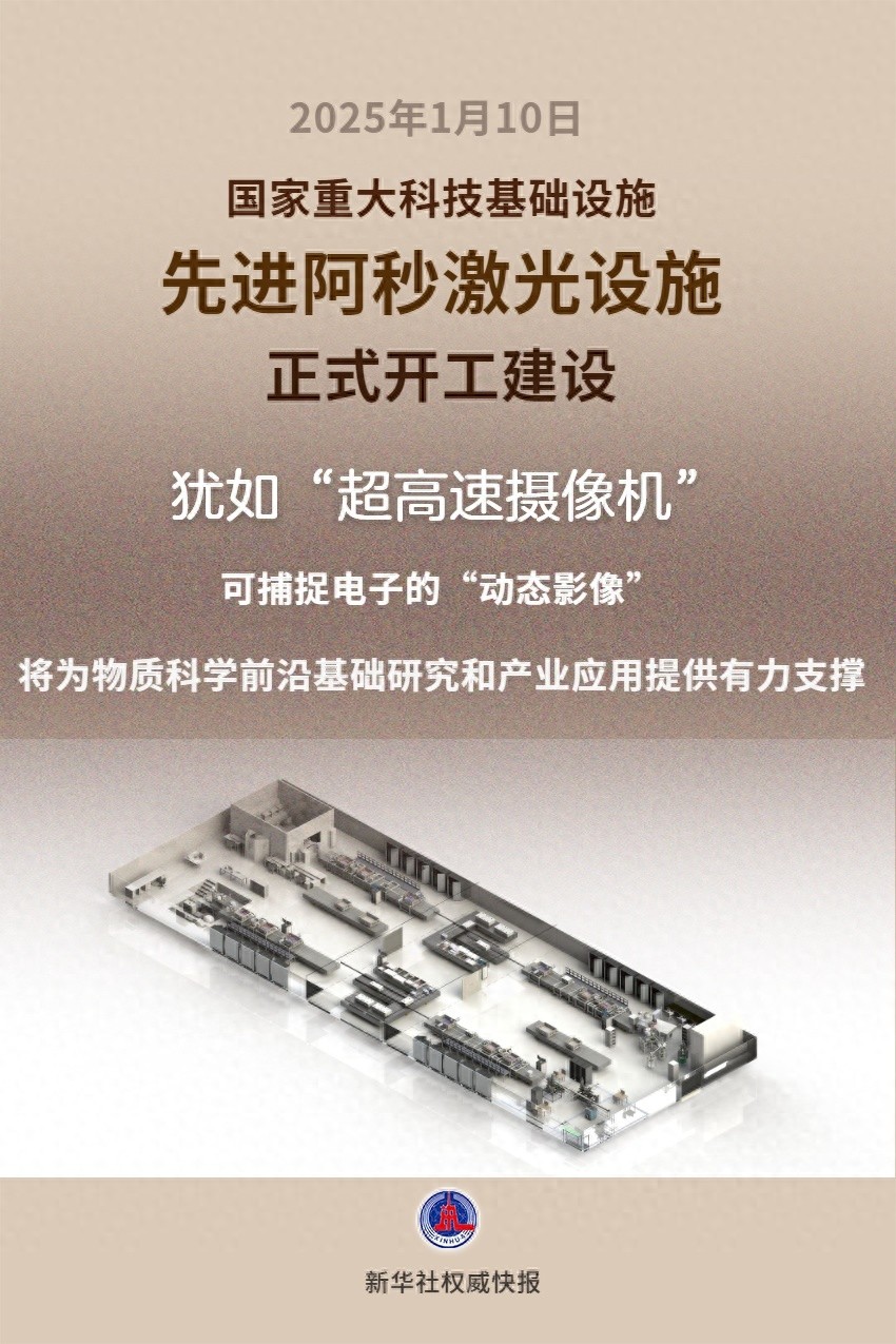 国家重大科技基础设施——先进阿秒激光设施1月10日在广东东莞正式开工建设。设施建成后,将为物理、化学、材料、信息、生物医学等多学科前沿基础研究和产业应用提供有力支撑。