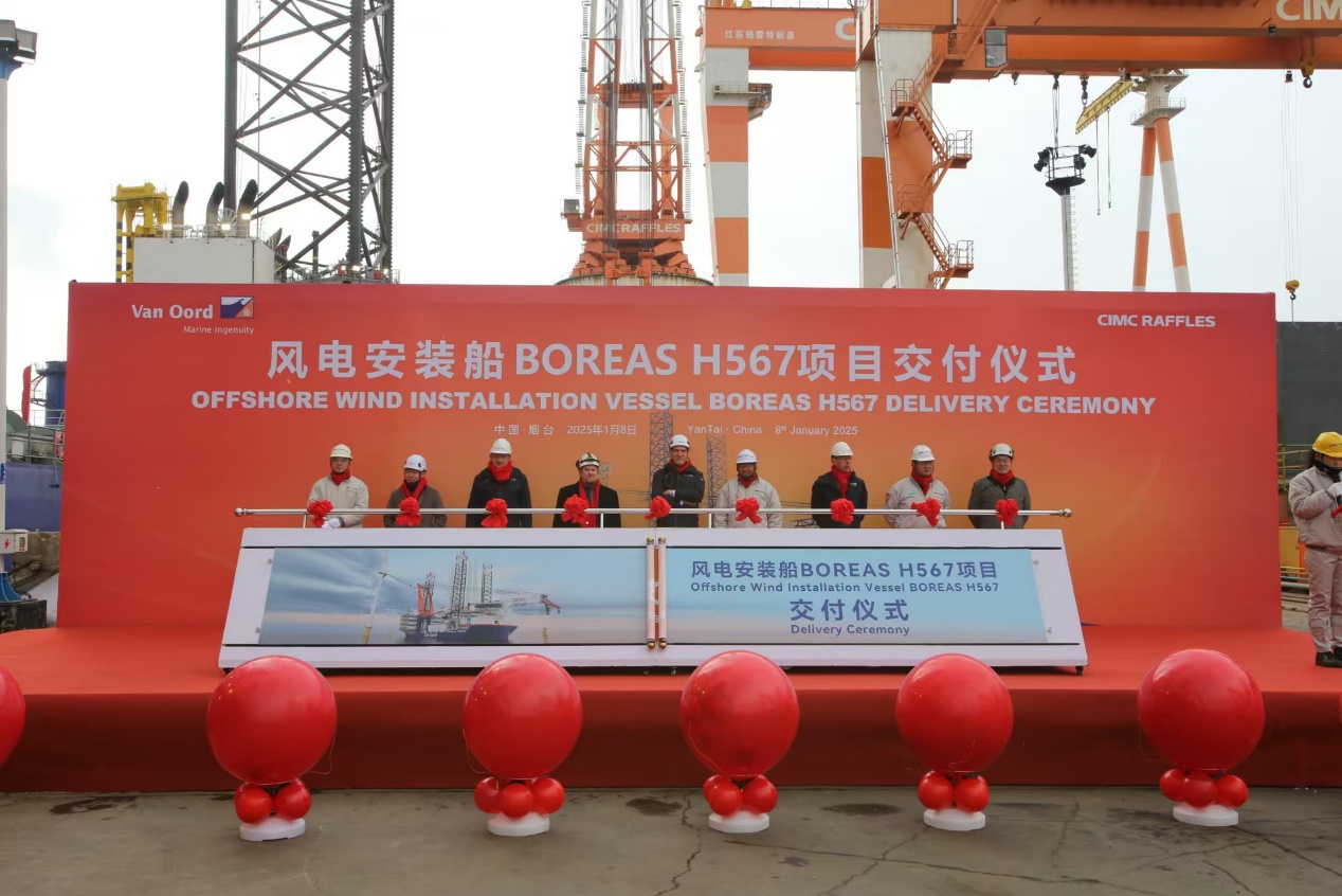 1月8日,中集集团旗下中集来福士为荷兰VanOord公司建造的全球最大、最新一代海上风电安装船BOREAS项目在烟台基地举行交付仪式。这一成果为全球海上风电事业注入新动能,彰显我国在高端海洋装备制造领域的强劲实力。