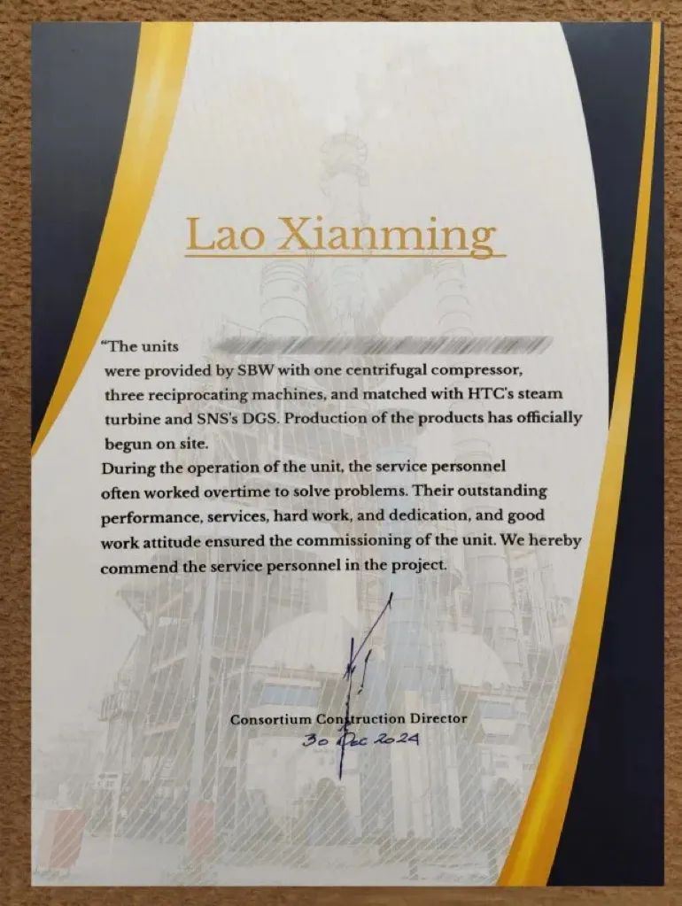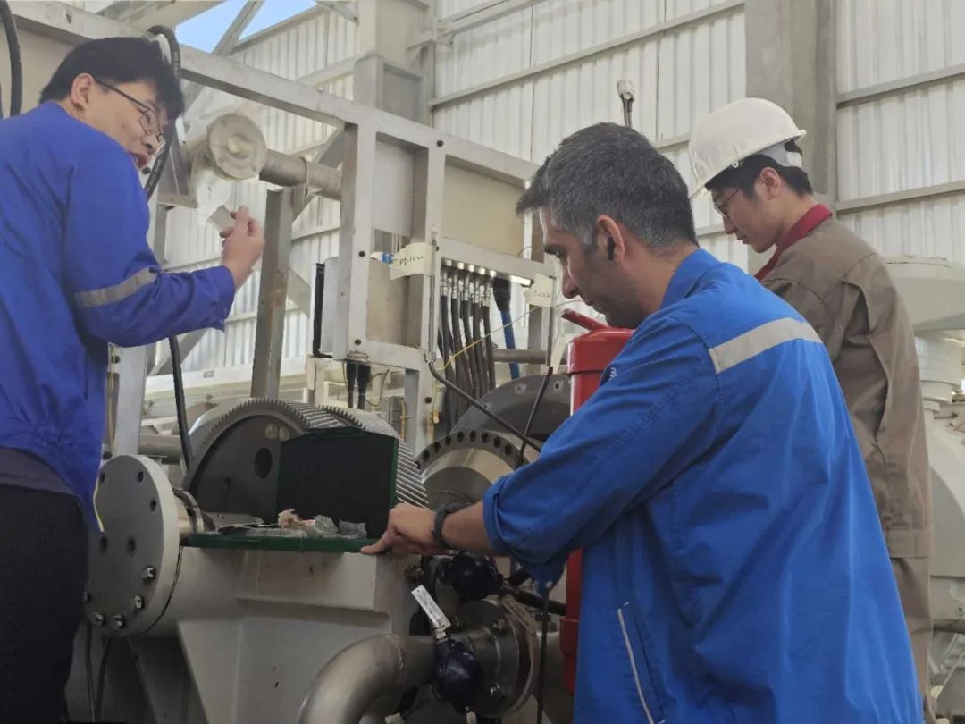 抵达现场后,他立即投入到紧张的工作中。通过深入调查历史原因,与用户团队紧密合作,共同讨论试车方案,凭借丰富的现场经验和沈鼓专家团队的技术支持,终于成功地完成了氮气试车,为整体试车的成功奠定了坚实的基础。这次沈鼓海外服务团队的紧急响应不仅解决了用户的燃眉之急,更赢得了用户的高度赞扬。