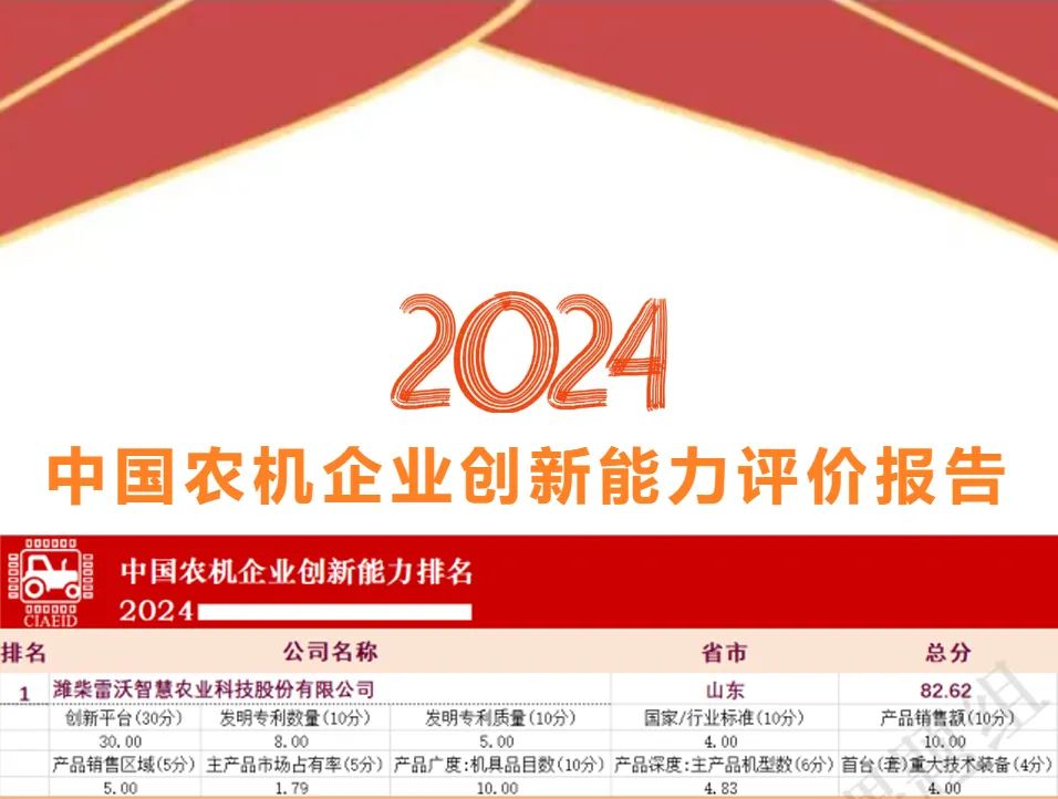 走在前、挑大梁。2024年,在海外内两个市场波动下行的大背景下,山东重工集团在主要经营指标创历史最好水平,其旗下潍柴雷沃智慧农业同样交出了一份亮丽的“成绩单”,全年实现营业收入174亿元,总销量、拖拉机、小麦机、玉米机、花生机销量等多项行业第一,经营业绩创行业新高,强势领跑行业。