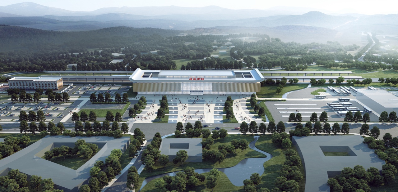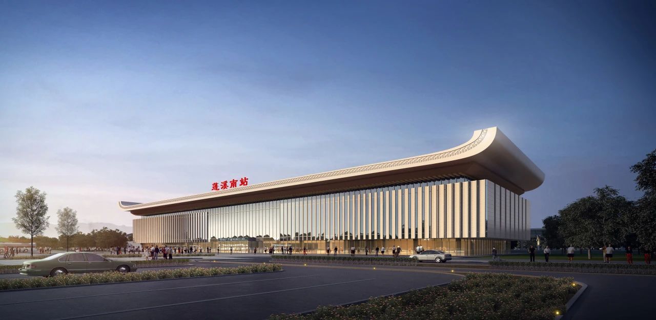 蓬溪南站位于四川省资阳市蓬溪县,建筑面积8000平方米,站场规模2台4线,为线侧平式站房。建筑以“书法长卷,徐徐展开”为设计理念,站房造型灵感源于“中国书法之乡”蓬溪县独具特色的书法文化。