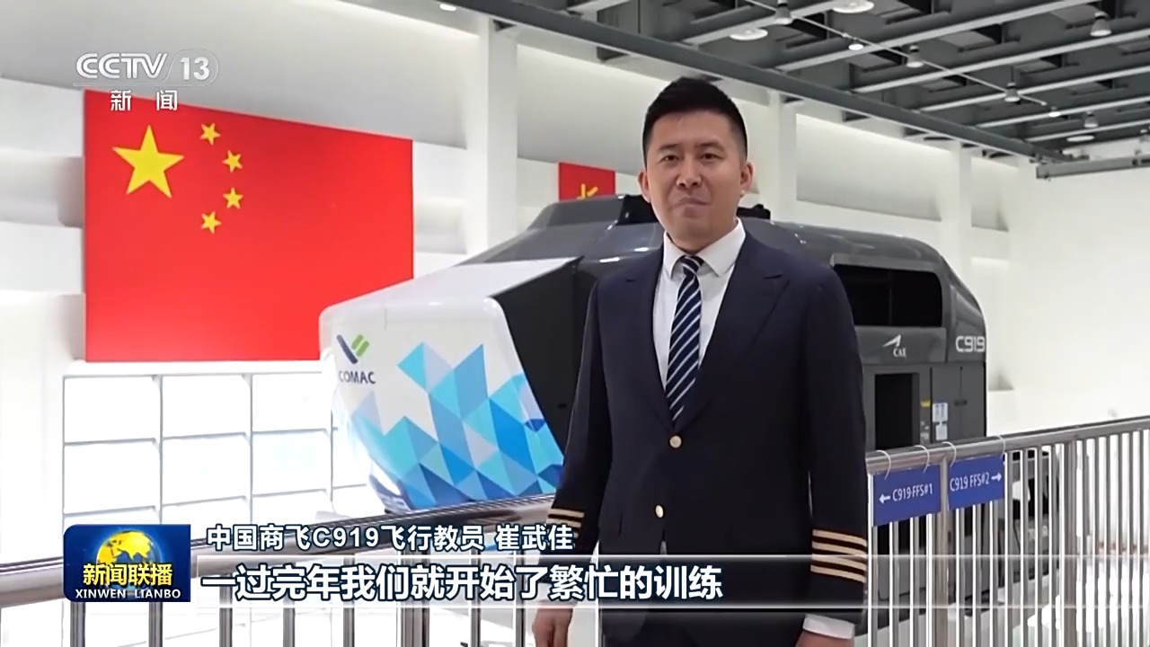 中国商飞C919飞行教员崔武佳:一过完年我们就开始了繁忙的训练,在新的一年,我希望我们C919飞机能够飞向更加广阔的天空。