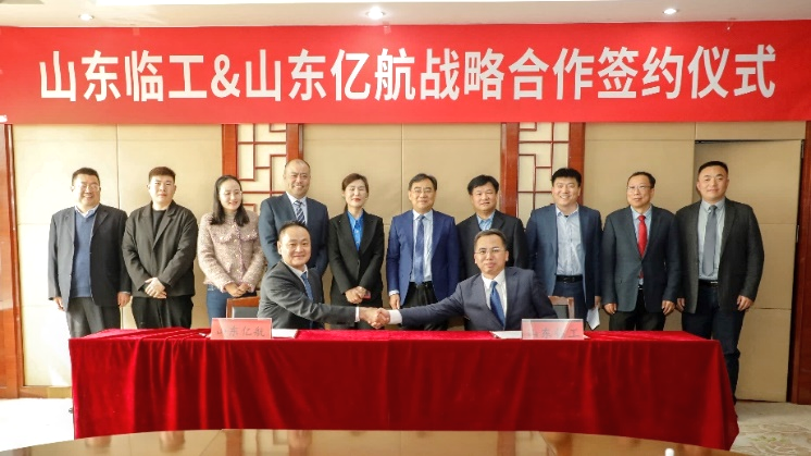 3月10日,春意盎然的临工工业园迎来重要时刻,山东临工与山东亿航国际控股在此举行战略合作签约仪式,双方将携手推进内外贸一体化发展,加快海外市场渠道建设。山东临工总经理文德刚、山东亿航董事长王建刚出席仪式并致辞,公司副总经理、国际营销公司总经理王晓辉代表公司签署合作协议。财务总监张罡及双方相关负责人共同见证这一重要时刻。