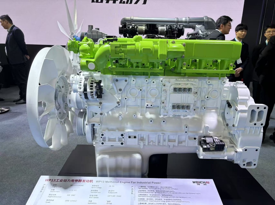 此次潍柴选取了四款油气田领域用颇具代表性的产品参展。其中WP13工业动力用甲醇发动机,服务于陆用发电等应用领域。它通过创新性地采用甲醇作为燃料,热效率高,使用成本较柴油机低40%,同时,显著降低了设备运行过程中的排放污染物,为实现绿色低碳作业提供了可行方案。该款产品通用化高,发动机七大专用件通用,通用化率超90%。