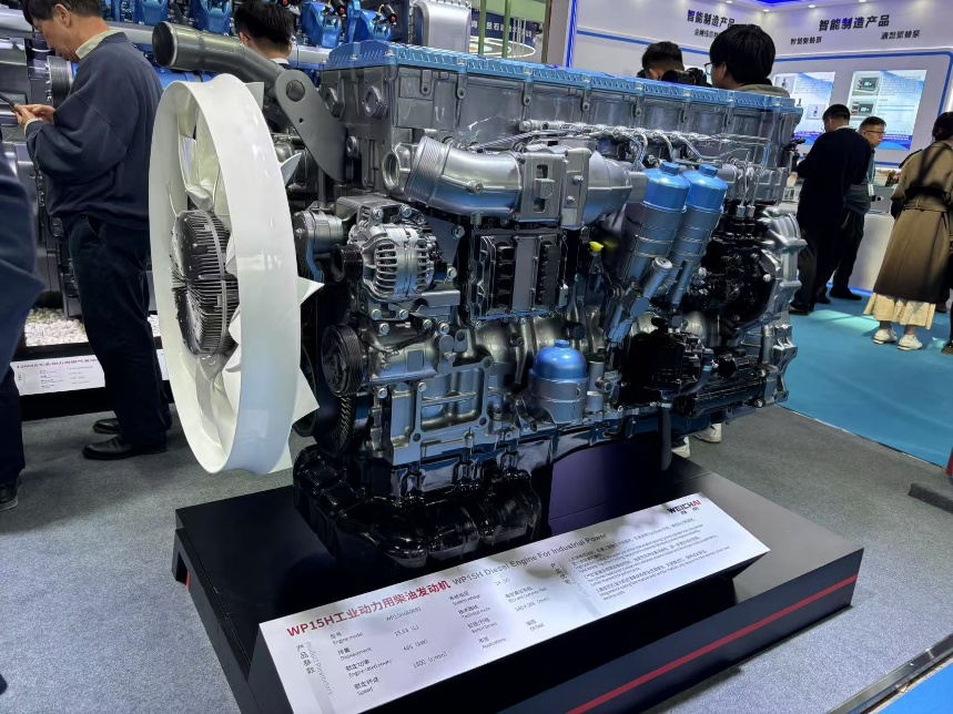 WP15H发动机是全新开发的高端产品,B10寿命达180万公里。它应用于修井机、固井车等领域。它搭载了先进的电控系统,能够精准控制燃油喷射,优化燃烧过程,有效提升了燃油经济性,降低了运营成本,是修井、固井等作业的理想动力选择。集成式机油冷却滤清模块和油滤清模块,只需更换滤芯,保养成本更低。在绿色环保方面也更符合未来市场需求,展台人员向中国工业报记者介绍说,该款产品满足了道路国六和非道路三阶段的排放标准。
