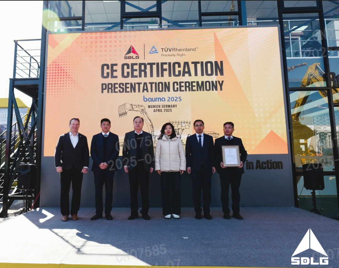 2025年4月7日,全球工程机械行业盛会德国宝马展(bauma2025)在德国慕尼黑隆重举行。山东临工携L958HEV电动装载机、L902H紧凑型装载机、E620HEV电动挖掘机、ER6155H挖掘机等多款匠心设备亮相德国宝马展,产品覆盖小型化、电动化等高端化产品。开展当天上午,山东临工举行了CE认证授牌仪式。TÜV莱茵集团代表现场为山东临工颁发最新锂电产品CE证书,标志着其电动化技术全面符合欧盟严苛标准,国际化战略再获里程碑式突破。临工集团董事长王志中,临沂市相关领导,德国莱茵公司工业机械P.04DEU总经理JanHoehne等人共同见证了此次活动。
