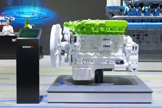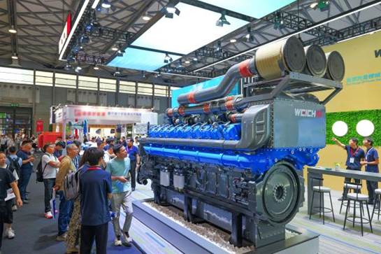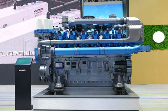 除了以柴油作燃料的20M61、6M31,潍柴还带来两款清洁能源发电动力产品:12M55NG和WP13陆用发电甲醇发动机。这次展出的12M55燃气发动机主要应用于陆用发电,这款产品依靠其蠕铁材料的高可靠性和成熟的自动控制系统,可以实现7×24小时无人值守,源源不断地为客户创造价值。