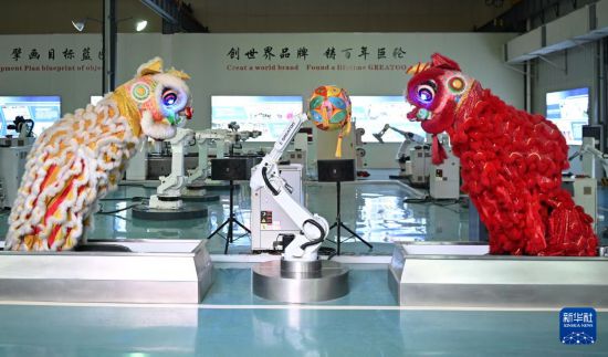 位于揭阳的巨轮智能装备股份有限公司的工业机器人舞狮(6月29日摄)。