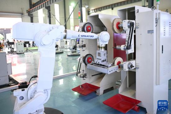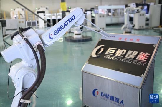 位于揭阳的巨轮智能装备股份有限公司的激光切割机器人(6月29日摄)。